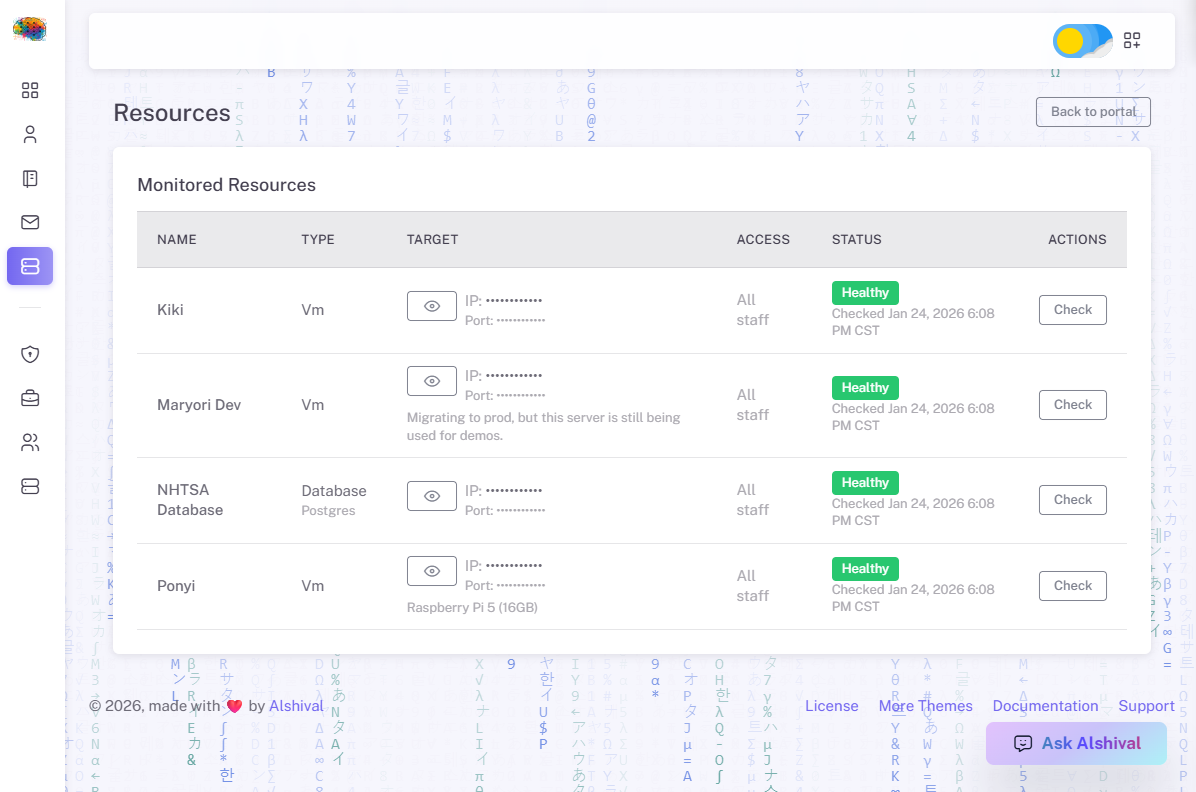 We built a proxy to our team's VPN for Alshival to use, which allows them to check the status of resources that can only be reached on the VPN.