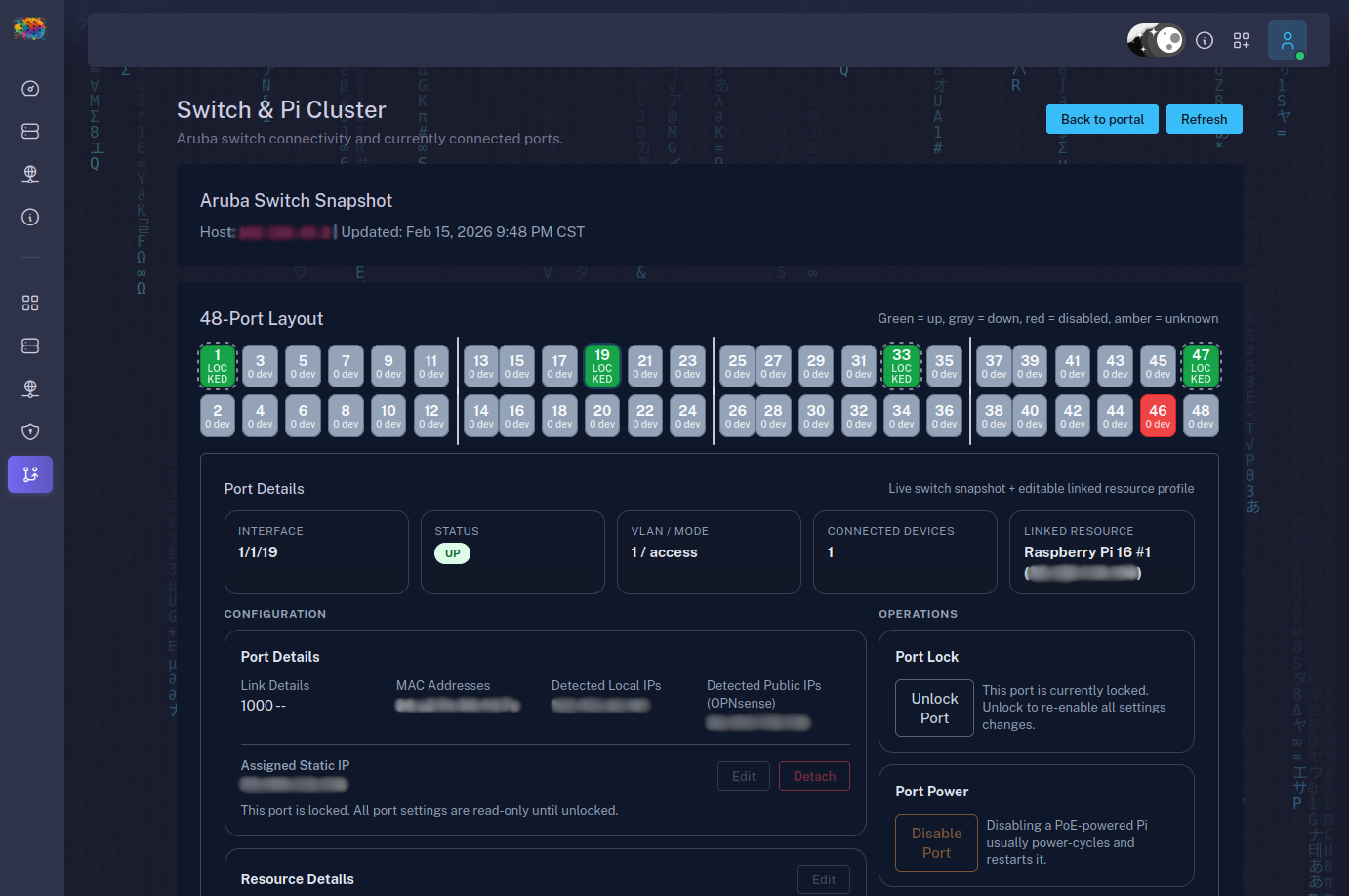 To run this platform, we built internal cluster tooling for network and infrastructure operations. Alshival is integrated into that workflow to help automate common operational tasks.